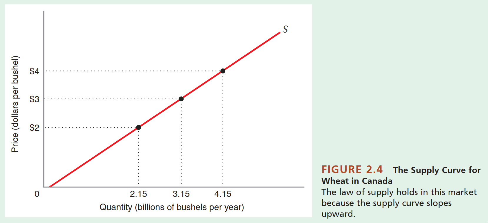annotate("text", x = 220, y = 125, label = "Oferta: Qs = -100 + 2P", size = 7, color = "forestgreen", fontface = "bold") +