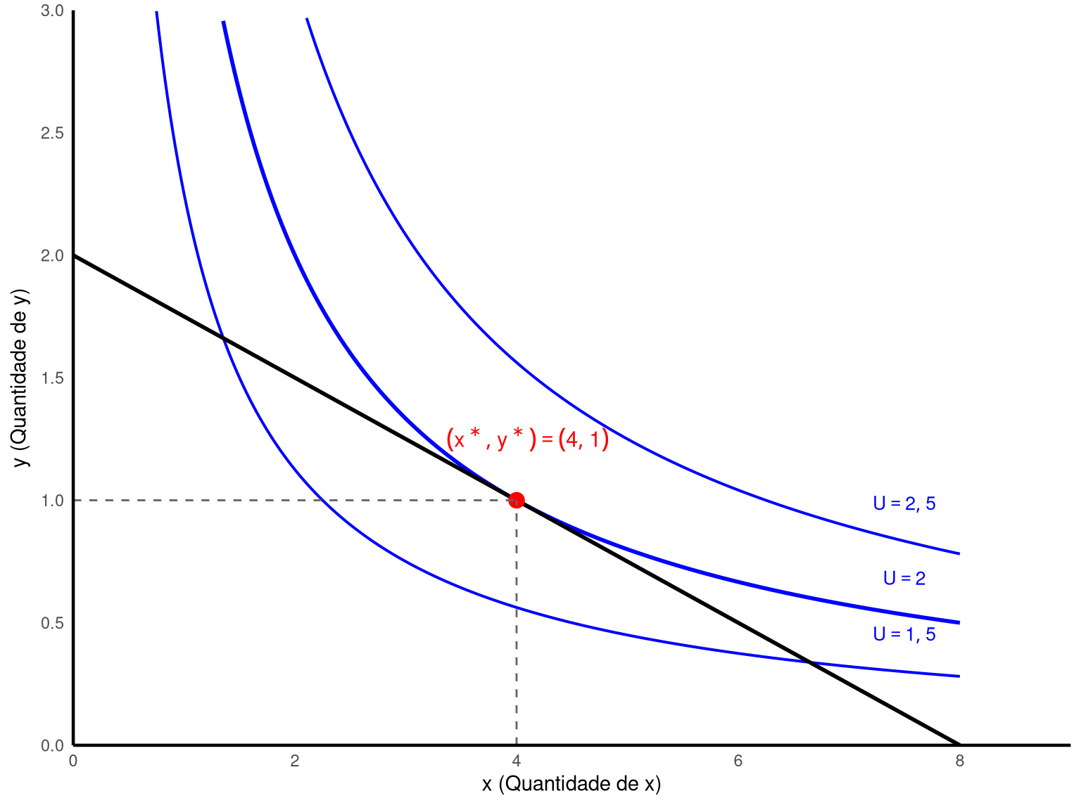 # LINHA 3: Caso 3 — U = min(x, 4y) (sigma = 0, Leontief)
